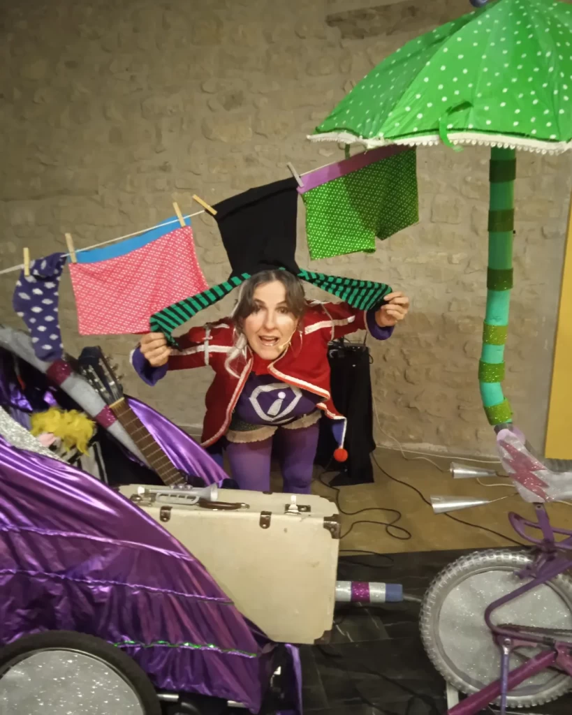 Espectáculo de teatro para todos los públicos dinámico y muy divertido donde el arte del clown se conjuga con canciones, juegos con un gran paracaídas, cuentos y muchas risas…
