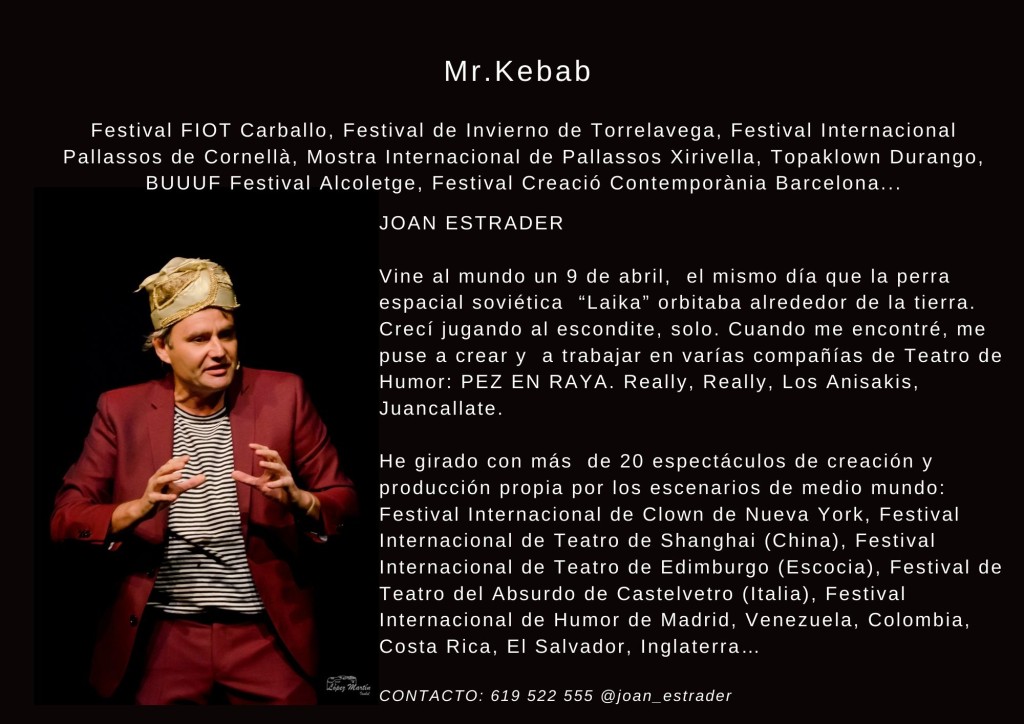 Mr. Kebab mezcla humor absurdo, surrealismo, magia, juegos de palabras y una gran complicidad con el público.