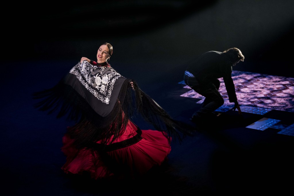 Oro sobre azul cierra una trilogía de la artista hispano-lusa, que pretende unir en el escenario, a Flamenco con olor de Fado, a Pessoa, a Revolución de los Claveles, a Amalia… Y todo con una puesta en escena que trasportará al espectador hasta el conocidísimo barrio de la Alfama de Lisboa en esa necesidad de la artista de dejar aflorar sus dos raíces, la saudade, la vivencia flamenca y desde una visión estética, sonora y dancística acorde con la contemporaneidad del momento vital de su generación