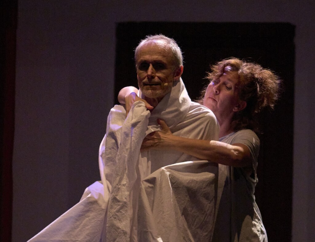 San Juan de la Cruz sigue lo que llamaríamos una vía negativa, apelando al vaciamiento del ser, al despojamiento por completo de cuerpo y alma en la búsqueda del Amado. Por ello, nuestra puesta en escena es profundamente sencilla y minimalista, porque busca esa coherencia, ese vaciamiento escénico. No obstante, hemos querido acompañar el ejercicio escénico y jugar con pequeños materiales a modo de bodegones. Al hallarse la obra de San Juan tan llena de símbolos, nos propusimos una puesta en escena sencilla pero simbólica, que pudiera recoger gran parte de su poética en la relación del actor con la condensación significante del símbolo. La noche, la llama, el agua, la naturaleza y sus animales, la luz… Además, contamos con la bellísima presencia de la viola de gamba, cuya música acompaña los versos y la búsqueda espiritual y escénica. En eso también quisimos realizar un guiño al poeta, pues San Juan era un apasionado de la música. La música es otro portal, otro espacio de revelación interior.