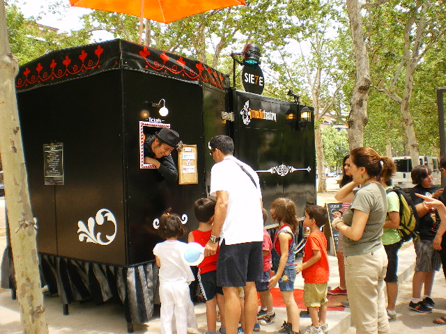 Un teatro que jamás han visto. Un teatro sobre ruedas. En su interior de sie7e metros cuadrados, grupos de quince espectadores en funciones de 10 minutos. Un detallista espacio escénico en miniatura donde caben los sueños más grandes.