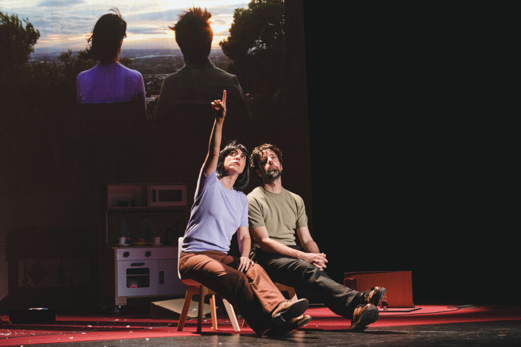 En esta nueva pieza nos centramos en trabajar la ficción como algo que da forma a nuestra realidad. Los personajes de «Simulacro» tratan de imitar la vida, la capturan en el interior de una cámara de vídeo con el propósito de sentir o entender algo, y así estar preparados para lo que pueda venir en el futuro. Pero es como si a base de artificios y falsificaciones se hubieran olvidado de cómo conseguir que las cosas sucedan de verdad.