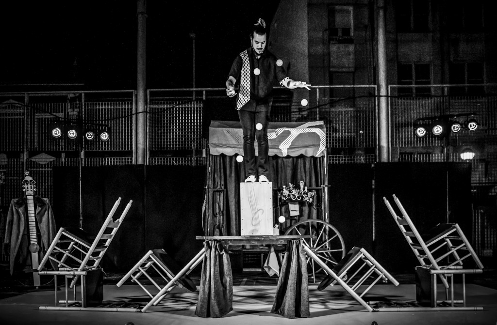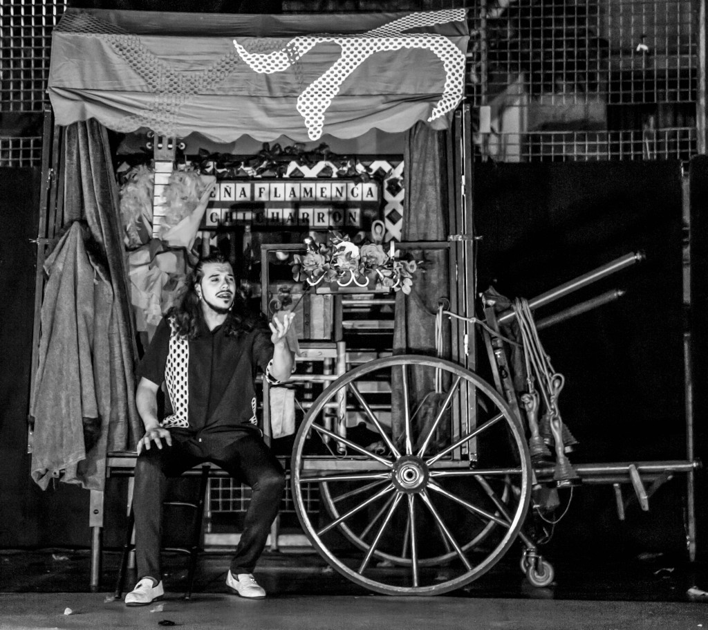 Chicharrón, último eslabón de una dinastía flamenca, trae el carromato donde guarda la peña flamenca familiar, en la que fusionará los ritmos y compases del Flamenco con los malabares.