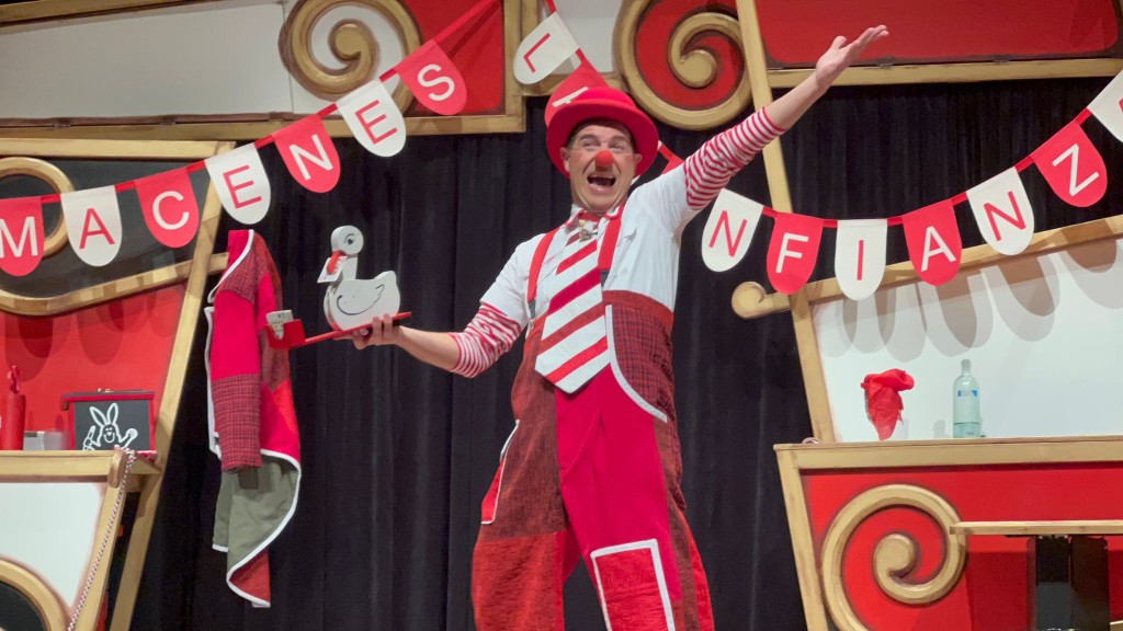 A continuación, se suceden una serie de gags, juegos teatrales y trucos que disfruta el público pero que ponen en evidencia, no sólo la manera poco ortodoxa y lejana de todo lo estándar que usa el payaso en su quehacer, sino también su falta de precisión y destreza. Los equívocos y contradicciones son tan frecuentes que se convierten en el hilo conductor de la trama.