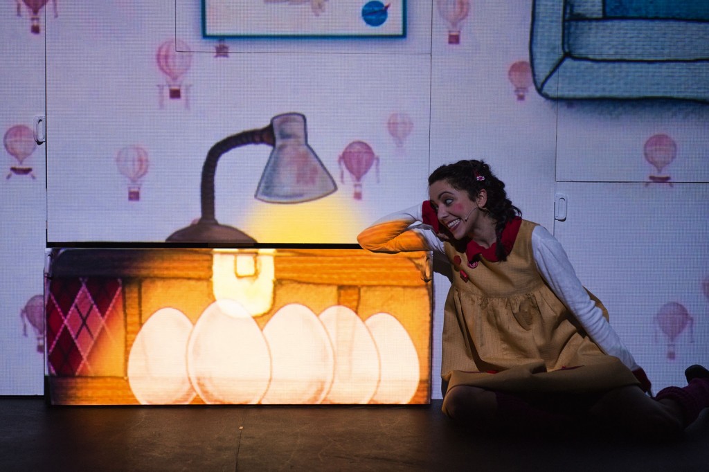 A la luna combina teatro y cine de animación para dar forma a una mágica historia llena de ternura y fantasía en un sorprendente espectáculo familiar.