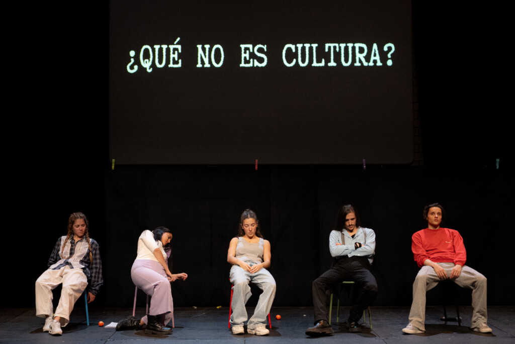 La “cultura” es un término que engloba un montón de conceptos diferentes. Desde la visión de cinco jóvenes burgaleses estudiantes y profesionales del arte, exponemos el término “cultura” desde nuestra sincera realidad, tratando de buscar una respuesta a la gran cuestión <<¿qué es la cultura?>>. En esta propuesta contemporánea, donde se incluyen proyecciones en directo, donde la iluminación es un personaje más y donde el vídeo, la palabra y el movimiento tienen el mismo protagonismo, unos personajes caricaturizados, estereotipos descarados de artistas y consumidores de cultura, se enfrentan a distintas situaciones comunes. El público los verá comportarse, viéndose reflejado en unos u otros, sintiéndose uno más en la obra. ¿Encontraremos una definición definitiva? ¿Qué es la cultura?