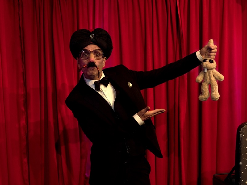 Asimismo, también aparece en escena el mago Fetiche y su asombrosa magia cómica, que es amenizada en directo por el compositor Pietro con un piano clásico de pared.