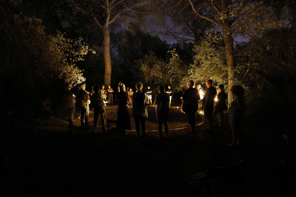 Convocado en un espacio natural, el público participa en un aquelarre tranquilo. Un encuentro ritual donde cada uno leerá un libro sorprendente y será llevado a una reflexión sobre los vínculos entre la palabra escrita, los rituales de brujas, la memoria y la inteligencia vegetal. Una experiencia individual y a la vez colectiva.