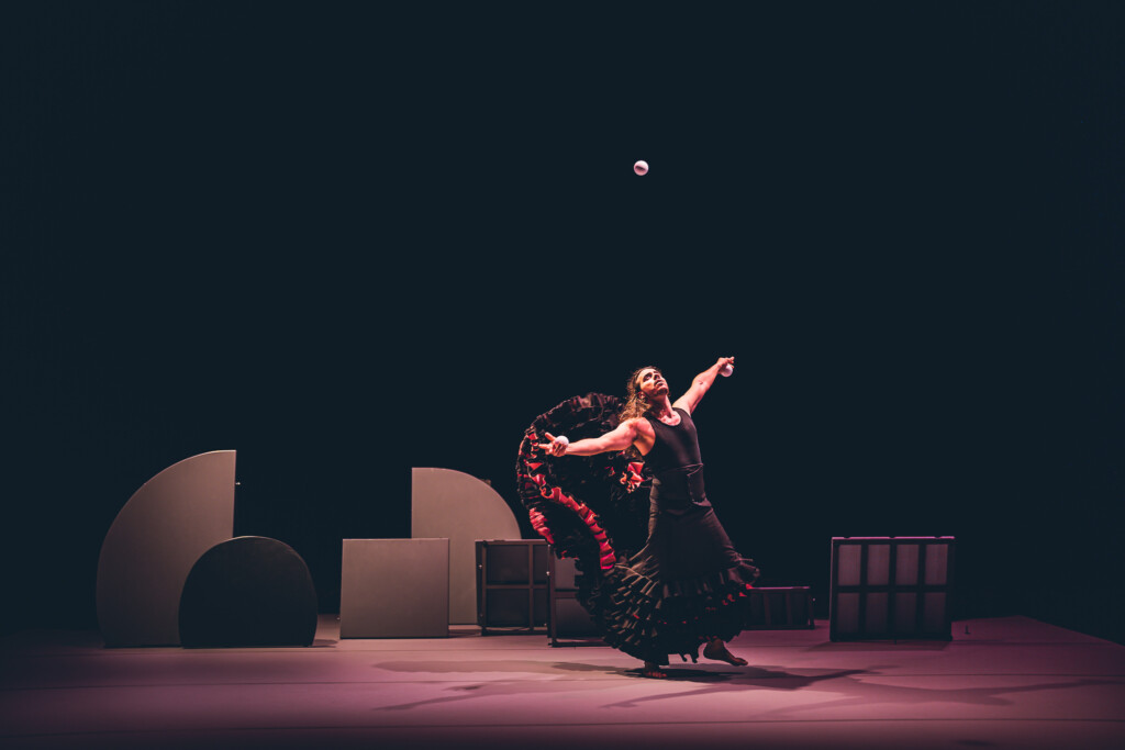 Empaque es un espectáculo asentado en la poesía del circo, el flamenco y el humor, a través de una dramaturgia intuitiva y contemporánea de los malabares, el cante, los ritmos y la palabra.