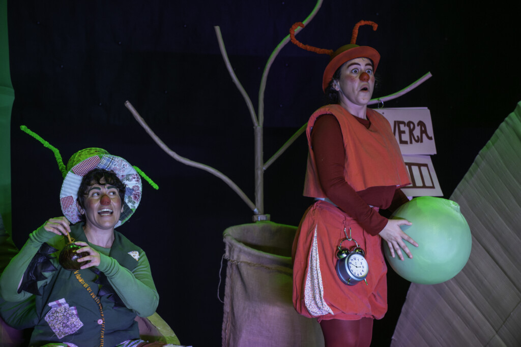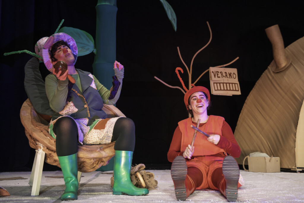 Teatro familiar y primera infancia, a partir de 3 años. 50 min Esta historia es una versión libre, divertida, ágil, tierna y emotiva sobre la fábula de La Fontaine. Creada a través del movimiento y del gesto, con un humor tierno e infantil nos dirigimos a la primera infancia, dónde la música, las imágenes y la belleza visual tienen un protagonismo especial. En el camino de la vida y el despertar de la primavera se encuentran una cigarra y una hormiga, ambas tienen formas diferentes de cómo afrontar su día a día. La hormiga, sin descanso, recolecta y guarda todas las provisiones de alimentos para cuando llegue el inverno. La cigarra, sin embargo, aprovecha el buen tiempo para descansar y disfrutar. Pero éste encuentro fortuito les llevará a cambiar su visión sobre la vida, conocer que el trabajo es satisfactorio y nos fortalece y que el ocio y el descanso es necesario para nuestra felicidad. Un viaje por las cuatro estaciones lleno de color, donde el público asistirá al nacimiento de una gran amistad entre Cigarra y Hormiga.