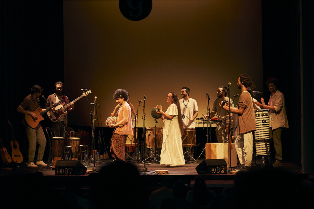 Todos estos significados e interpretaciones de la misma palabra son fruto de las migraciones, de los intercambios entre personas anónimas que, quizás sin saberlo, enriquecían sus culturas con aportaciones de las del otro. El grupo Maracumbé, con su espectáculo homónimo, propone una música que nace como fruto de la convivencia de músicos de múltiples procedencias, que tienen Barcelona como punto de encuentro. El repertorio, creado casi íntegramente por la banda, está fuertemente inspirado en diversas músicas de raíz de todo el mundo, que el grupo ha ido conociendo a partir de la investigación y el intercambio de conocimientos entre sus miembros. En cierta forma, esta música es un reflejo de la nueva realidad social española: compleja, diversa, colorida, y que no puede ser entendida sin el intercambio de la cultura autóctona con otras recién llegadas. En “Maracumbé”, la jota, la chacarera, el joropo o el maracatú son el punto de partida de un viaje en el que conviven el portugués, el castellano, el euskera y el yoruba con instrumentos folclóricos de Cuba, Senegal, Brasil, Venezuela o la Península Ibérica. Con el ritmo como principal protagonista, este grupo de once músicos propone un espectáculo enérgico, alegre y bailable, en el que el colectivo brilla por encima de las individualidades, y en el que los músicos y el público vibran con la misma frecuencia.