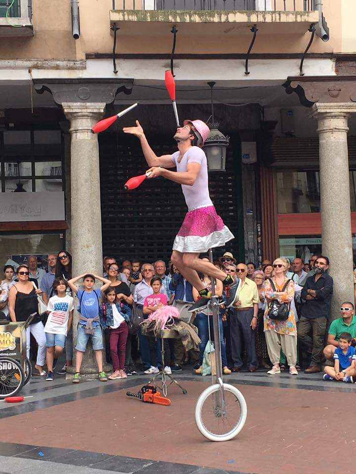MÁXIMO, bufón y malabarista, es un maestro en el arte de la IMPROVISACIÓN. Un artista ácido e inteligente que realiza un espectáculo salpicado de números de riesgo que te pondrán los pelos de punta, mientras crea las situaciones más extravagantes y divertidas. Un humor provocador que hace reír a la vez que conmueve.