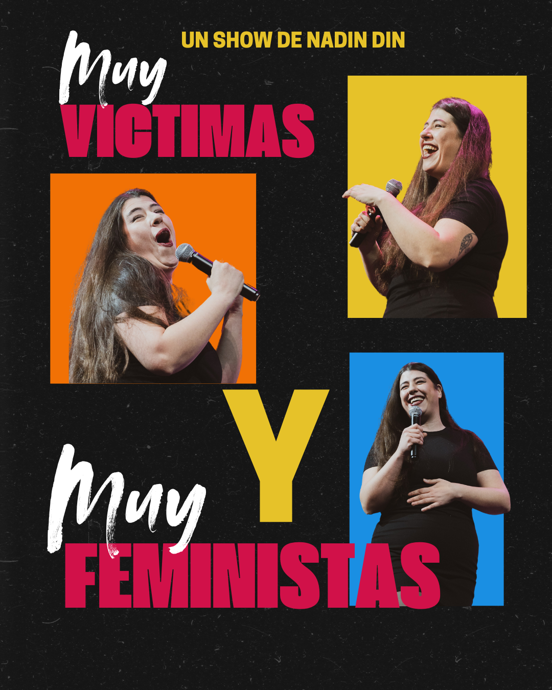 Muy Víctimas y Muy Feministas es un espectáculo de stand-up comedy que utiliza el humor como herramienta de reflexión. A través de un monólogo fresco, cercano y profundamente reconocible, la humorista Nadin Din aborda con perspectiva feminista cuestiones cotidianas que atraviesan la vida de millones de mujeres: la gordofobia, la relación con el sistema sanitario, la presión estética, la vida familiar, las dinámicas afectivas o los estereotipos que persisten en nuestra cultura.