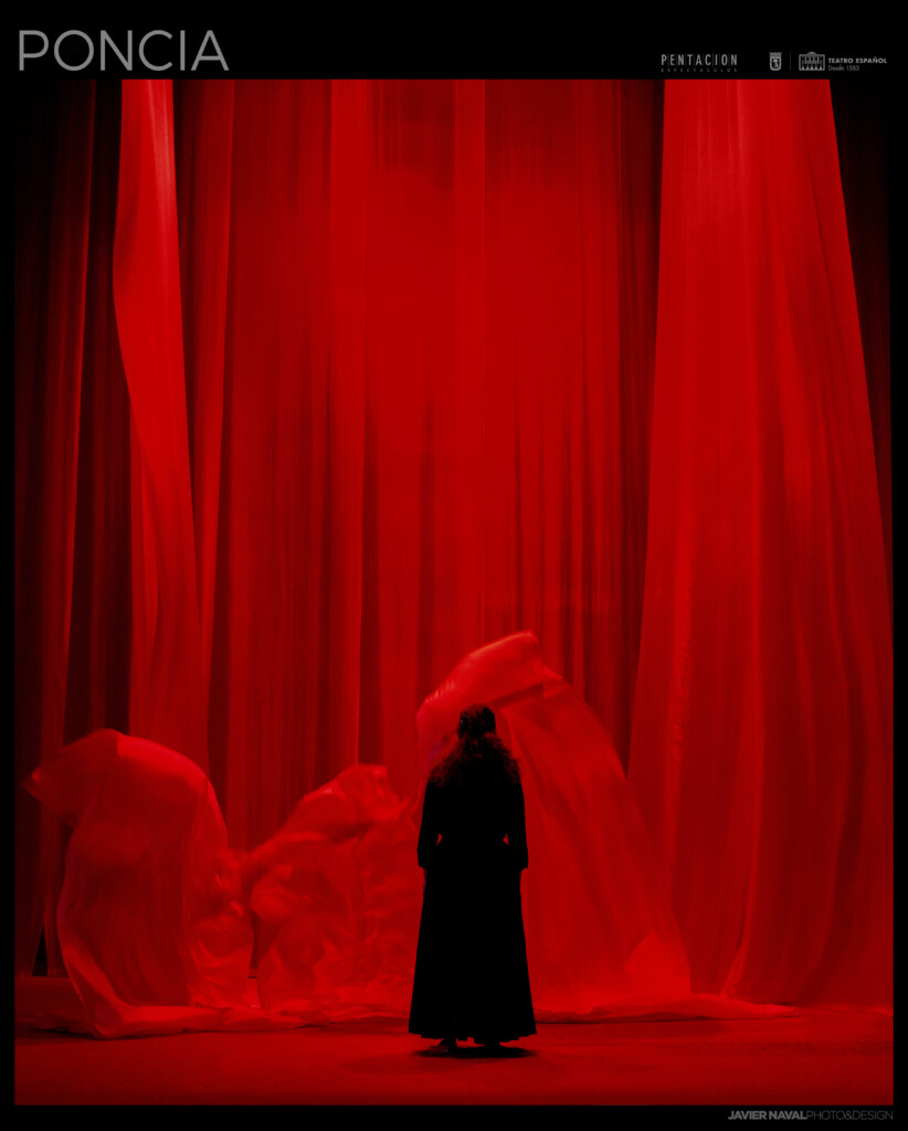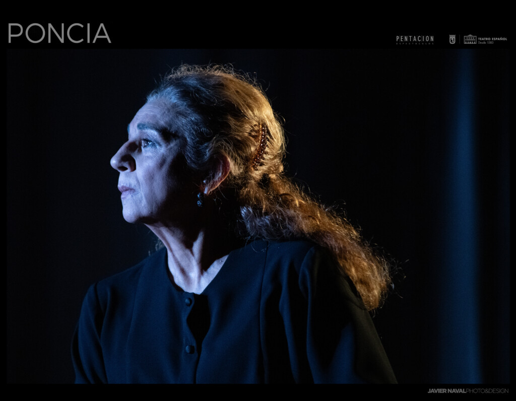 Este texto está escrito a partir de las intervenciones del personaje de Poncia en la obra de Federico García Lorca. En un profundo análisis del personaje, he rescatado las intervenciones de Poncia y las he convertido en reflexión, soliloquios, diálogos con fantasmas y sombras. De este modo, se alumbra un nuevo mirar dentro de la casa. En la obra original asistimos a una sucesión de hechos que se desarrollan en orden cronológico. Aquí, en esta Poncia, no. Ella habla después del shock producido por el suicidio de Adela. Todo ocurre después de su muerte.
