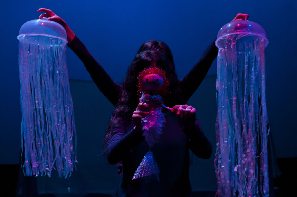Dos intérpretes escenifican con botellitas de aguas, palanganas, esponjas y otros objetos una sugerente adaptación del cuento de Hans Christian Andersen. Una versión donde la sirenita no tendrá que renunciar a su naturaleza ni a su don más preciado, su voz, para dejarse llevar por la marea del amor.