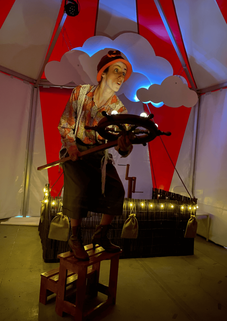 Teatro de inmersión donde el público tomará parte activa del propio espectáculo en el que se combinan la estética circense, el teatro y la magia. (Teatro, zancos, levitación de objetos, sombras chinas y un baile acrobático son algunas de las técnicas que podremos ver durante el espectáculo).