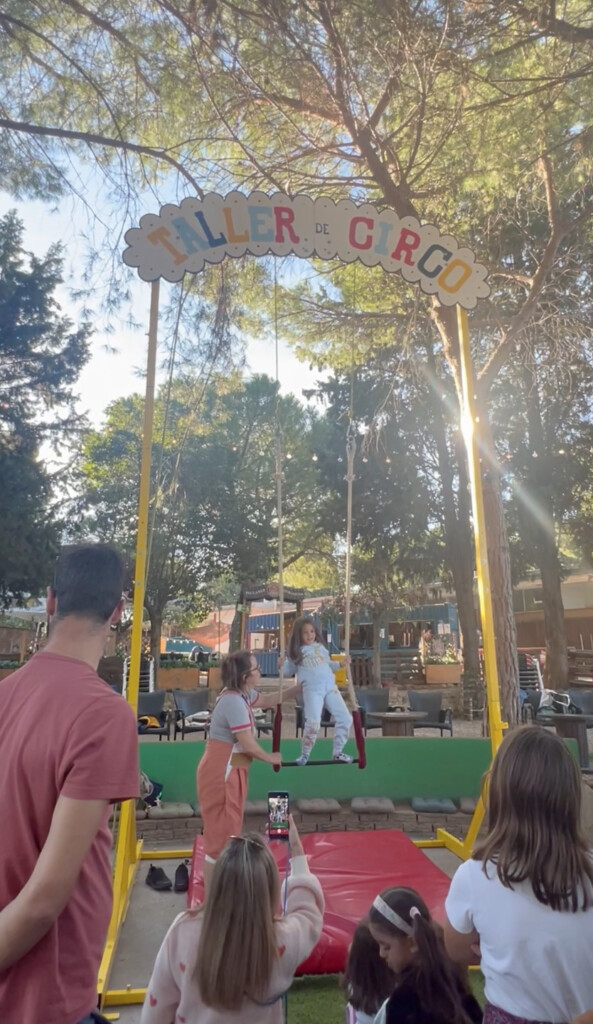 En el TALLER DE CIRCO podréis subir al trapecio, caminar sobre el cable de equilibrio, aprender a hacer malabares con mazas y pelotas, practicar con el diábolo, andar con zancos y también jugar con los más peques con nuestros puzzles.