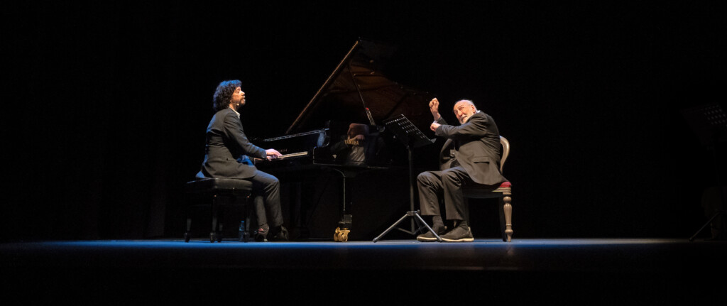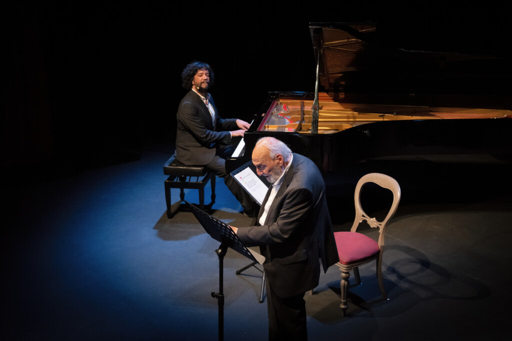 Casi cómo un cómplice, en este viaje a la memoria, lo acompaña musicalmente Juan Esteban Cuacci desde el piano, multiplicando la sensibilidad en la platea.
