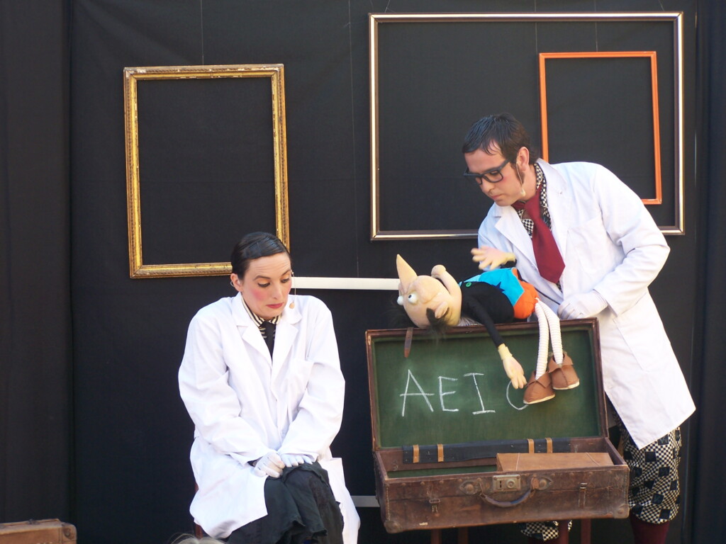 Un espectáculo dinámico y participativo dónde títeres de guante, marottes, objetos y máscaras conviven con el clown-intelectual de este singular equipo de investigación que todo lo rima.