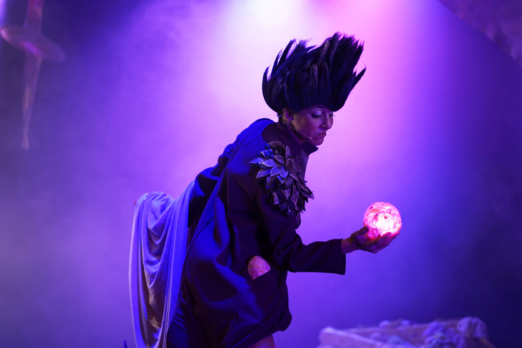 Una puesta en escena que combina personajes reales y títeres, con danza, canciones en directo, mucha música y una iluminación muy original.