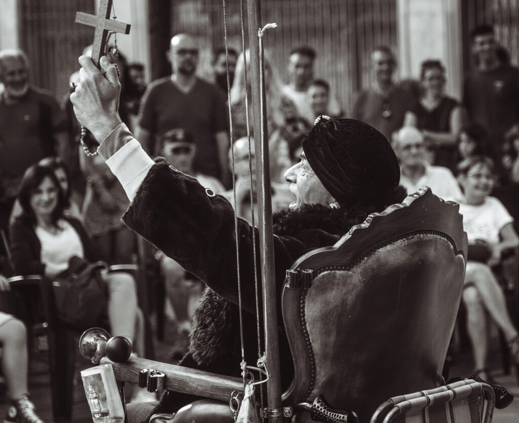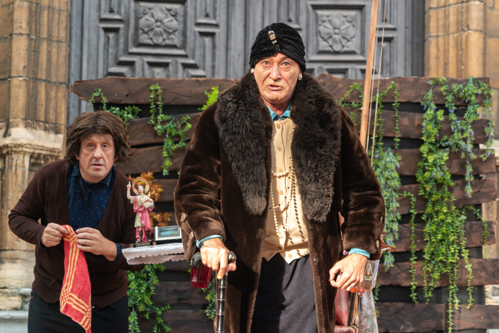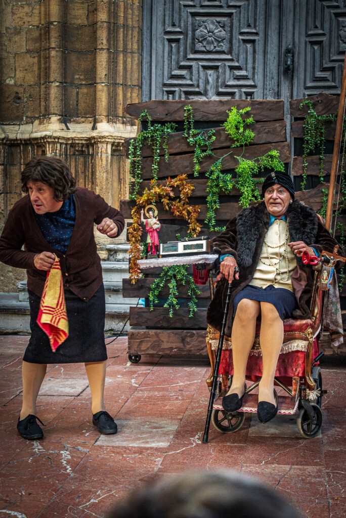 Doña Carmen y su inseparable sirvienta, Alejandra, transitan por el centro de la ciudad. La una sentada en una silla de ruedas que zumba pasodobles, la otra tirando de ella. Doña Carmen decreta y determina cual águila imperial, rezando y mentando a Dios constantemente. Alejandra no piensa, se limita a trabajar, y así será hasta el día que Dios quiera, aunque ojalá falten muchos años para que quiera.