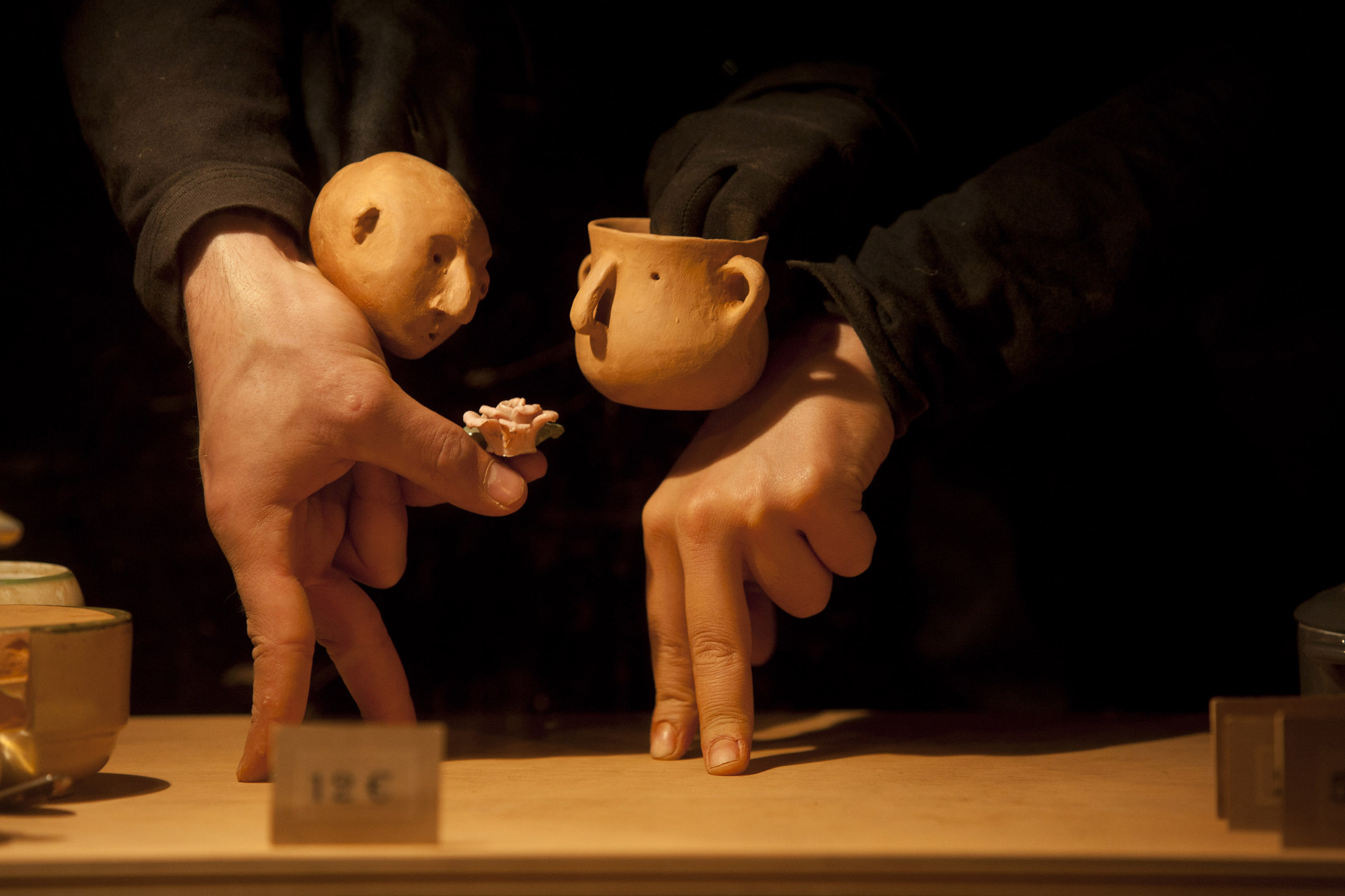 A Mano es una historia contada con barro, con un pequeño personaje con un enorme deseo de escapar, un escaparate y sus inquilinos, una historia de amor, una historia de pequeños fracasos, un torno, una diminuta alfarería y cuatro manos que juegan.