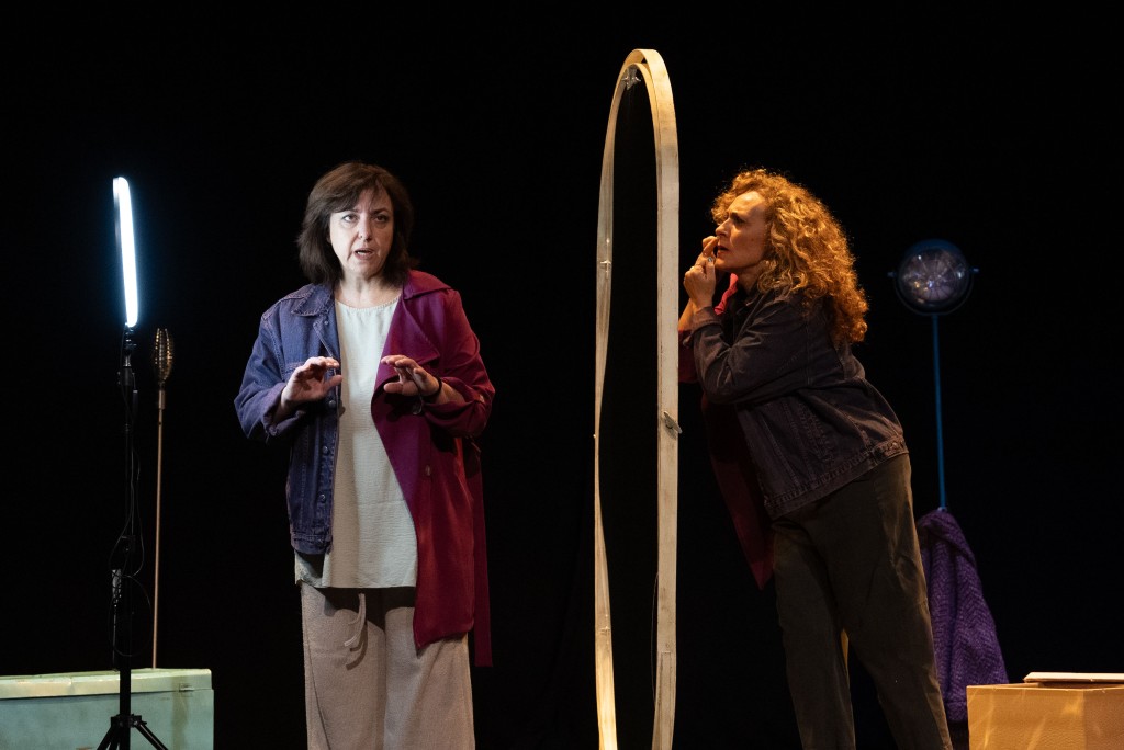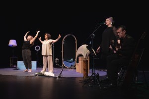 Varias piezas cortas, salpicadas de otras más breves, algunas minúsculas, y evocadoras canciones, que parece que nos traen y nos llevan, pero que en realidad nos pierden, en esta obra para dos actrices y dos músicos.