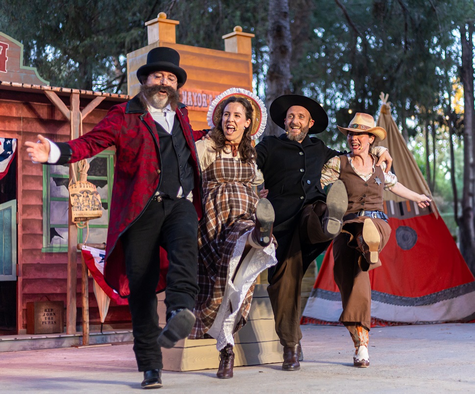 La nueva producción de ALMOZANDIA TEATRO es un espectáculo familiar inspirado en el universo del spaghetti western, que nos transporta al lejano oeste a través de un viaje disparatado, lleno de humor, personajes excéntricos y situaciones absurdas. Con una estética desenfadada y altas dosis de interacción con el público, la obra juega con los códigos del género para hablar, con sensibilidad y mirada crítica, de temas profundamente actuales: la sequía, la despoblación rural o la sostenibilidad. A través de la parodia y un lenguaje escénico accesible para todas las edades, el espectáculo busca despertar conciencia y empatía hacia los desafíos que enfrentan muchos territorios olvidados —la llamada España vaciada—, poniendo en valor su riqueza, su potencial y, sobre todo, el corazón de quienes aún la habitan.