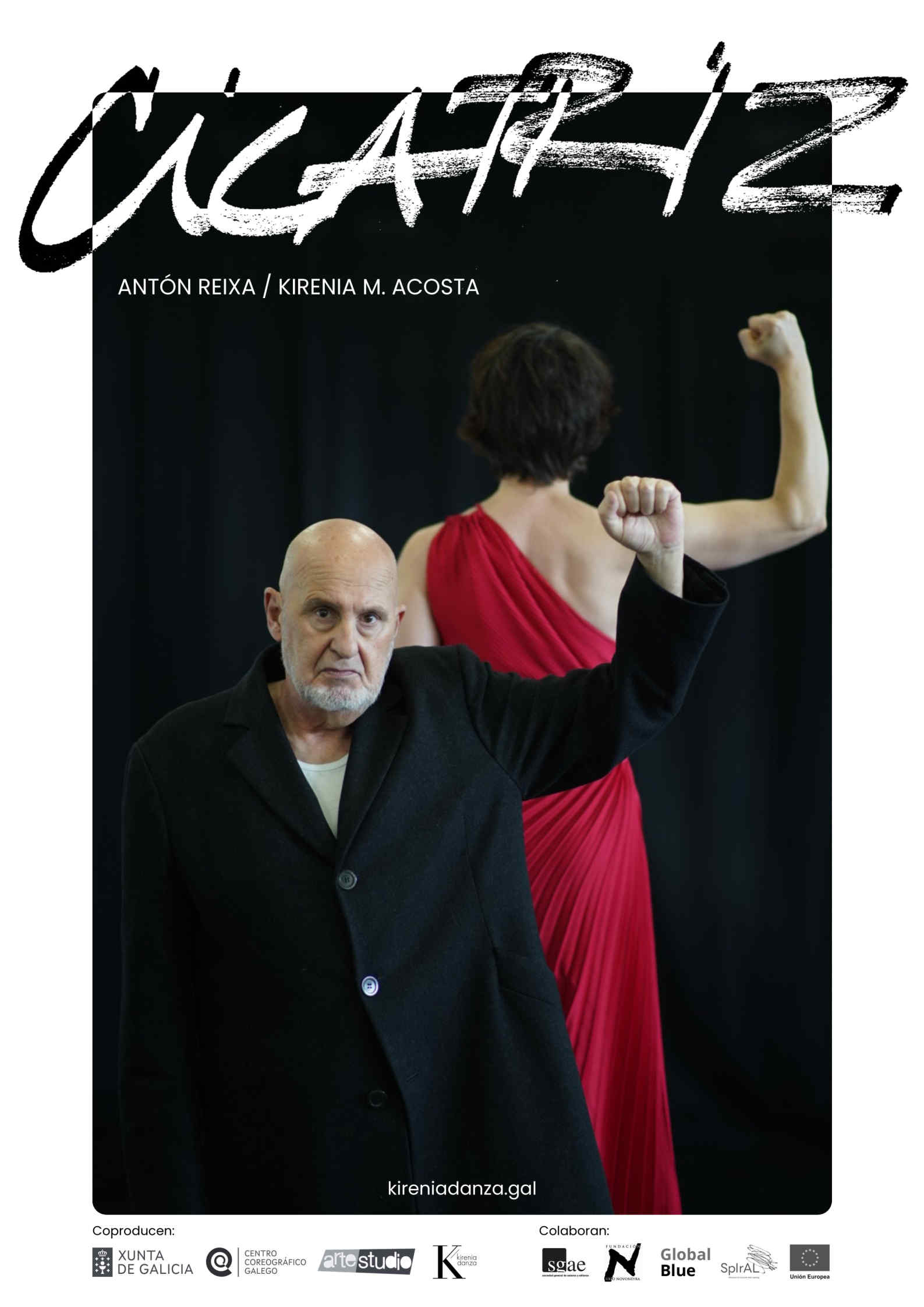 CICATRIZ es una pieza/performance de danza contemporánea que pone cuerpo al poema homónimo del icónico Antón Reixa, bajo la coreografía y dirección de Kirenia M. Acosta. 300 versos que comienzan con “QUIERO” exploran el deseo y la frustración de no conseguirlo como motores de la vida. En escena, dos cuerpos suturados: el del referencial artista gallego que se inicia en la danza a los 67 años tras un accidente que lo dejó en coma, y el de una coreógrafa de origen cubana con una trayectora atravesada por lesiones y resistencia. Su complicidad visibiliza el anti-edadismo y la inclusión. Un coloquio final invita al público a un tú a tú con estas vidas llenas de suturas.