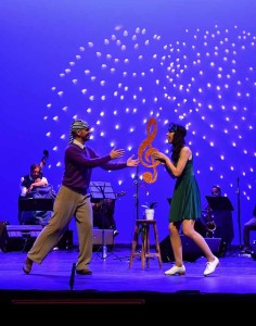 En escena, varias voces, instrumentos y movimientos dan forma a un repertorio que recorre las canciones más emblemáticas de la era del swing, con romanticismo, alegría y vitalidad. Más allá del entretenimiento, la dramaturgia apuesta por transmitir valores humanos universales: alegría, creatividad, la celebración de la vida y aquello que une a las personas.