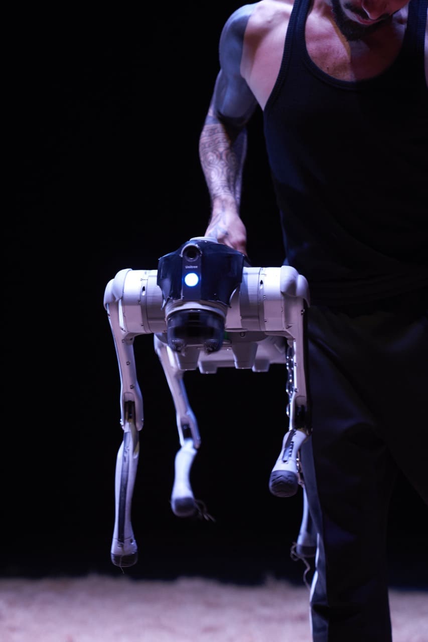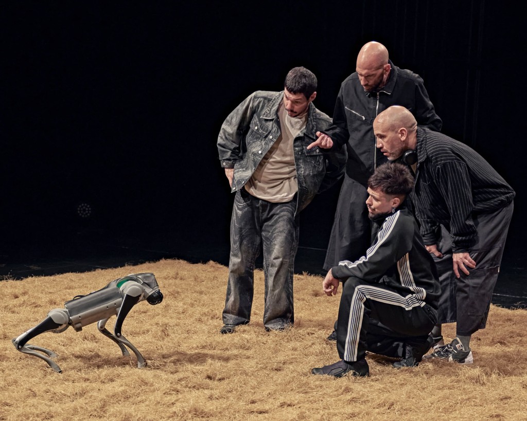 Cuatro personas y un perro robot. Un diálogo entre lo humano y lo artificial.