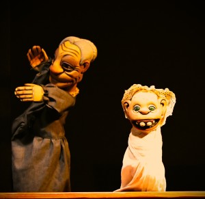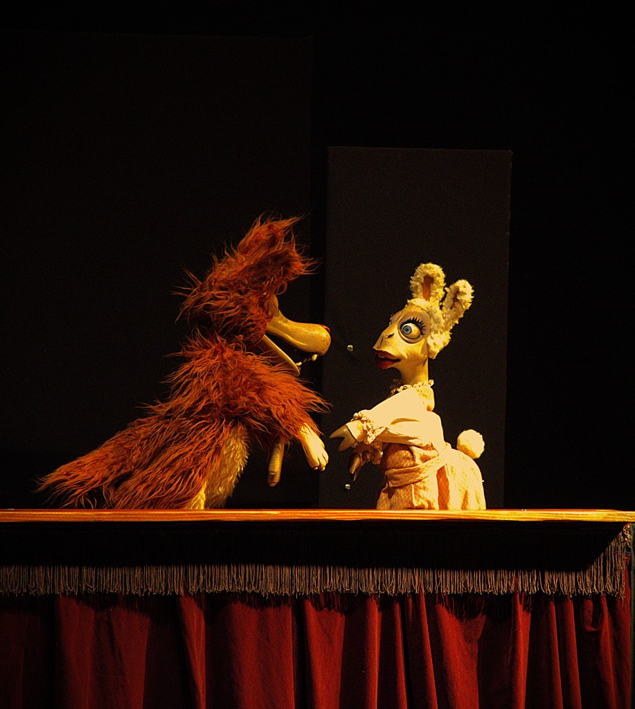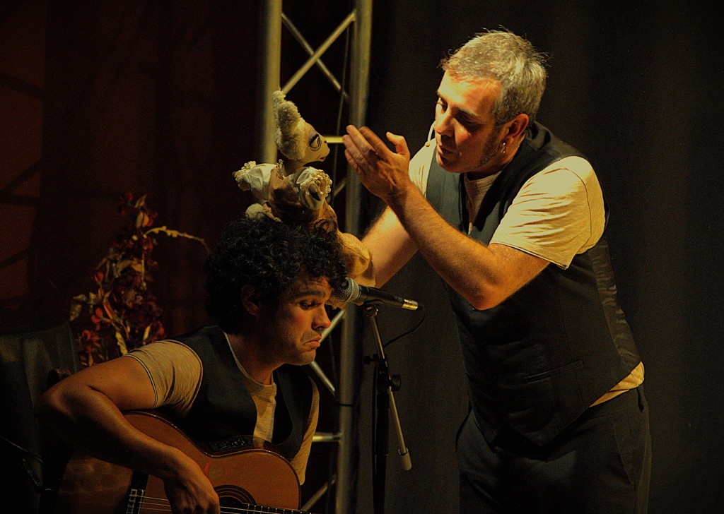 La técnica más clásica de los títeres de guante, con su color y ritmo, y la música en directo, con su magia y verdad, transportan al público a un universo titiritero de divertimento y comedia.