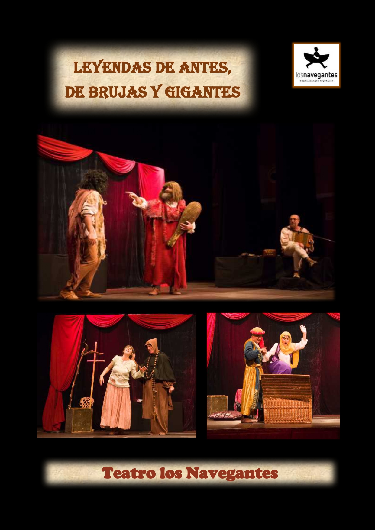 Los comediantes y el músico de teatro los Navegantes hemos querido llevar al escenario tres viejas leyendas aragonesas. Viejas, pero actuales; porque nuestras leyendas de antes, están en la raíz de lo que somos ahora; y porque el tratamiento teatral que les damos es divertido, irónico y contemporáneo.