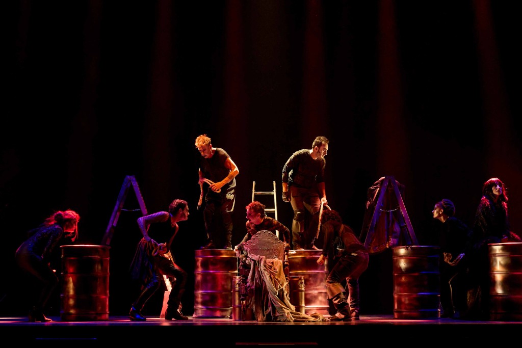 En esta versión, la percusión no convencional, diseñada por Ana Belén Beas, será un actor más junto a la interpretación veraz de cada actor y la potencia dramática y musical que elevan la obra a un altísimo nivel de calidad y exigencia artística. El elenco, compuesto por diez intérpretes encabezados por el propio Pérez Costa, junto a Goizalde Núñez y Ana Belén Beas, ofrece una lectura urgente y necesaria de este clásico más actual que nunca: hablar de la corrupción del poder, la ambición desmedida, la marginación social y el resentimiento que esta provoca, es hoy un deber del teatro.