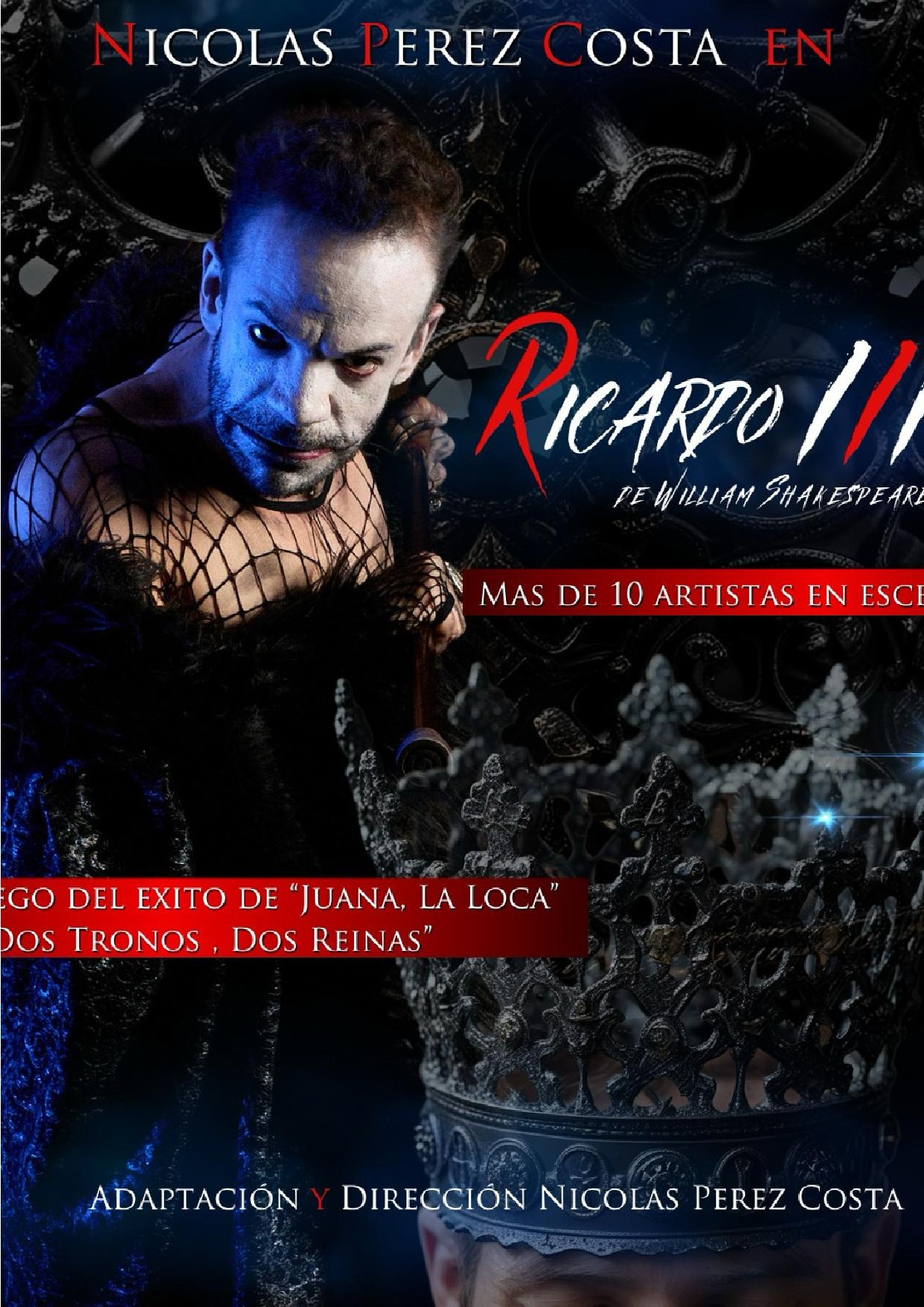 El prestigioso actor y director argentino Nicolás Perez Costa, presenta su nueva propuesta: «Ricardo III» de William Shakespeare. Una puesta del más grande de los clásicos de todos los tiempos, que promete trasladar al espectador a un universo distópico y anacrónico, donde los personajes conviven en un territorio visualmente impactante, crudo, intenso y dinámico.