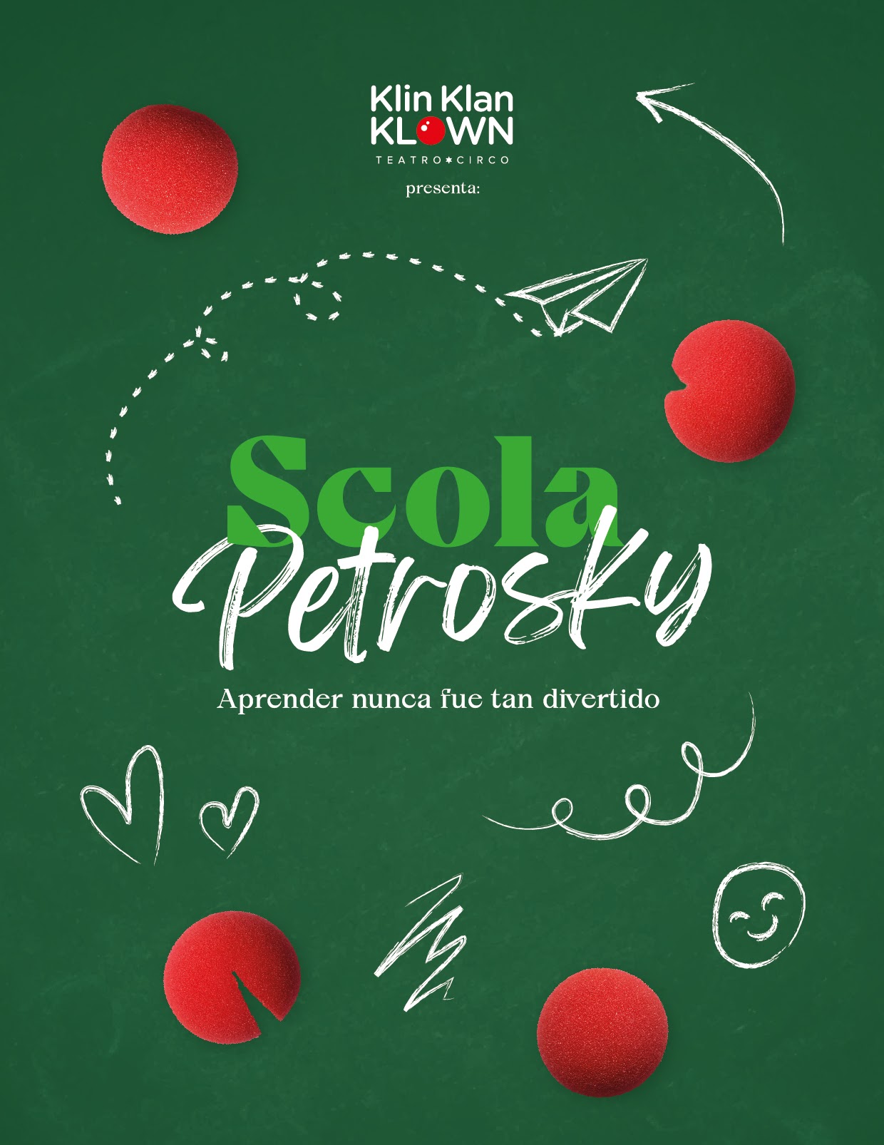 Espectáculo basado en el personaje del Profesor Petrosky y su escuela de Payasos, donde los alumnos, el público asistente, son los protagonistas.