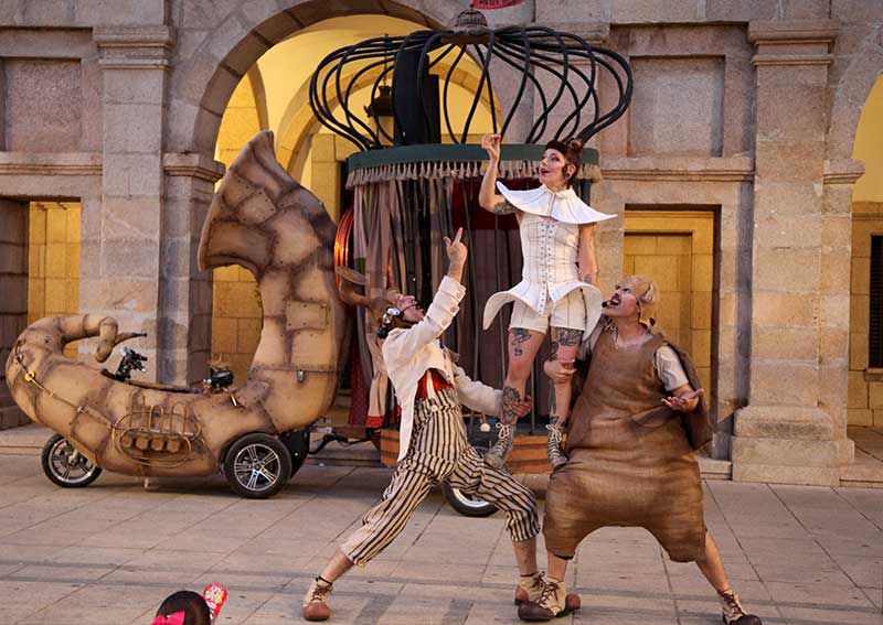 La domadora, la pulga y el conductor de esta curiosa troupe nos presentan este espectáculo itinerante extraordinario e inolvidable repleto de peripecias, números cómicos, interacciones con el público y mucho arte callejero para toda la familia.